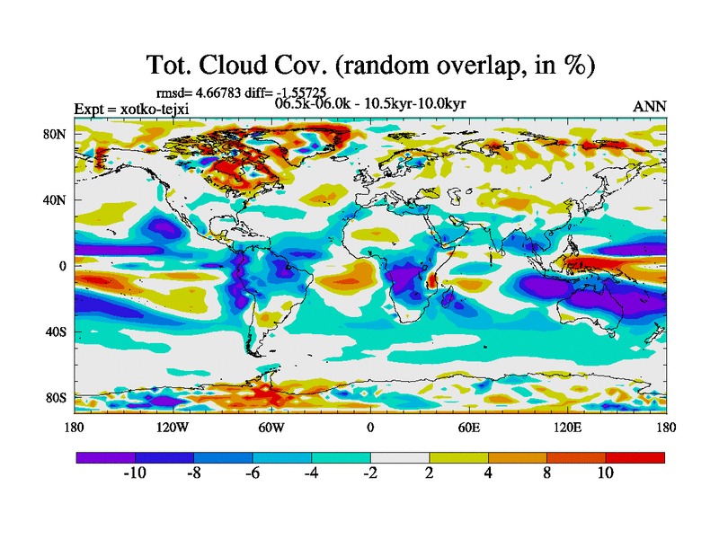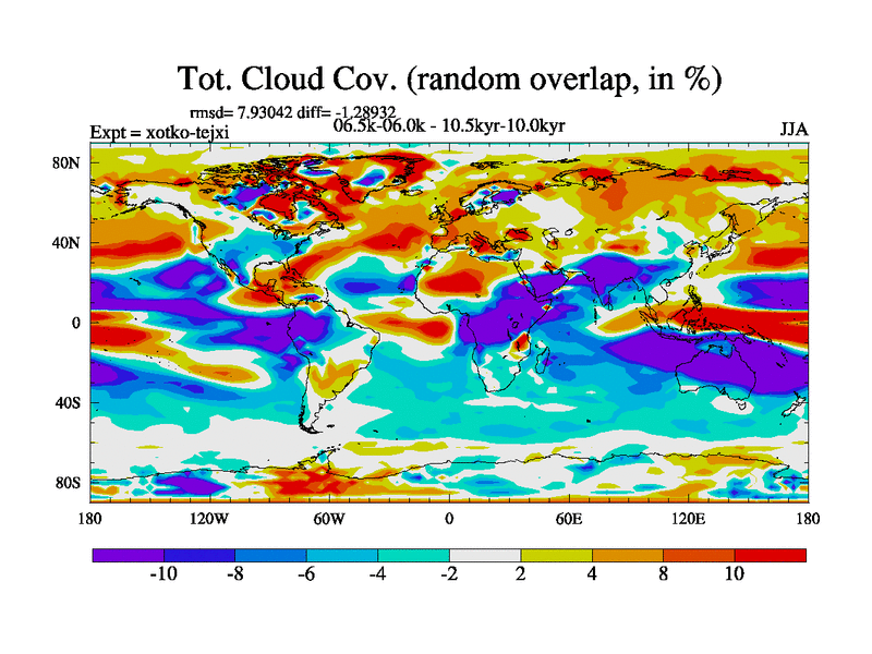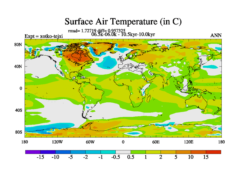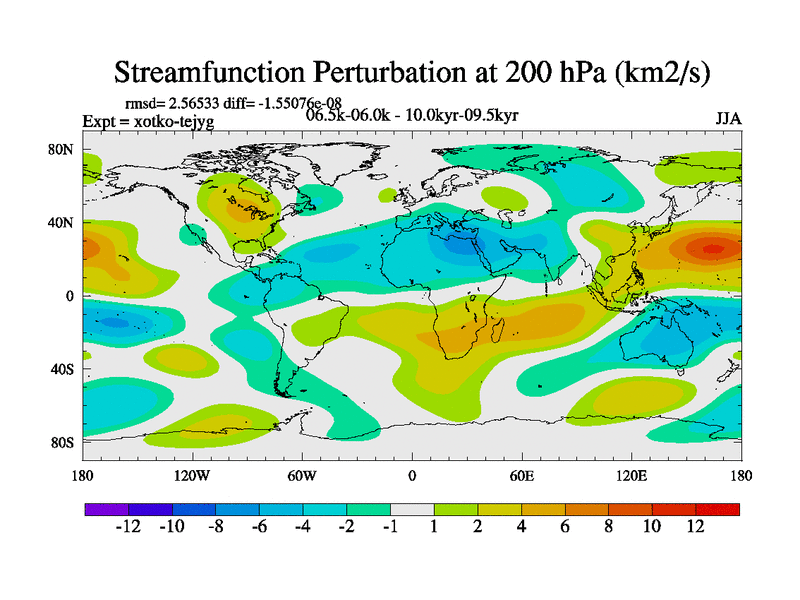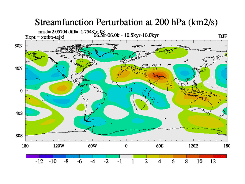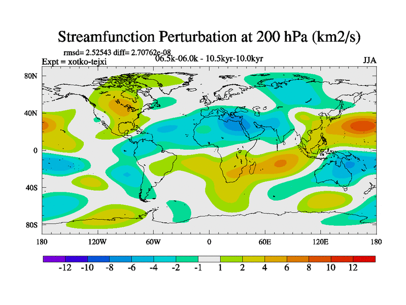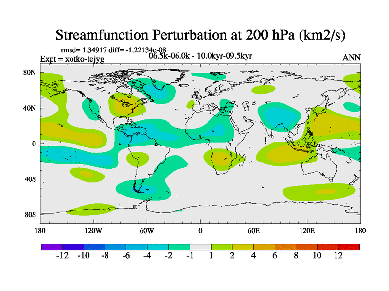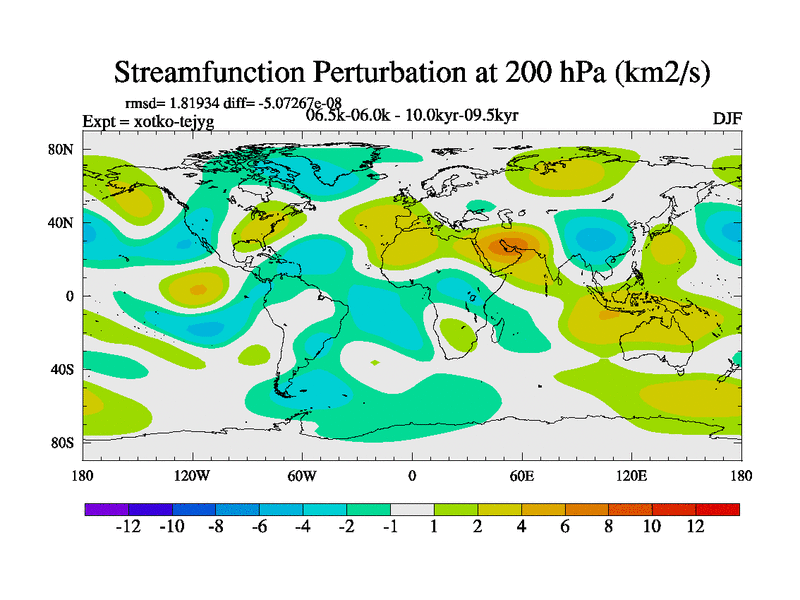 This is part of Birmingham Holocene simulations. This is the CONV-VMS configuration which includes changes to entrainment rate, detrainment and vegetation moisture stress. All forcings included except melt water fluxes. This series originally started from the tdphl spinup. Revised runoff maps, Russian rivers to Arctic. Solar and volcanic forcing is included.
