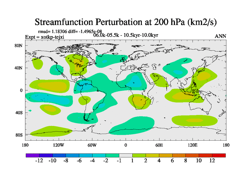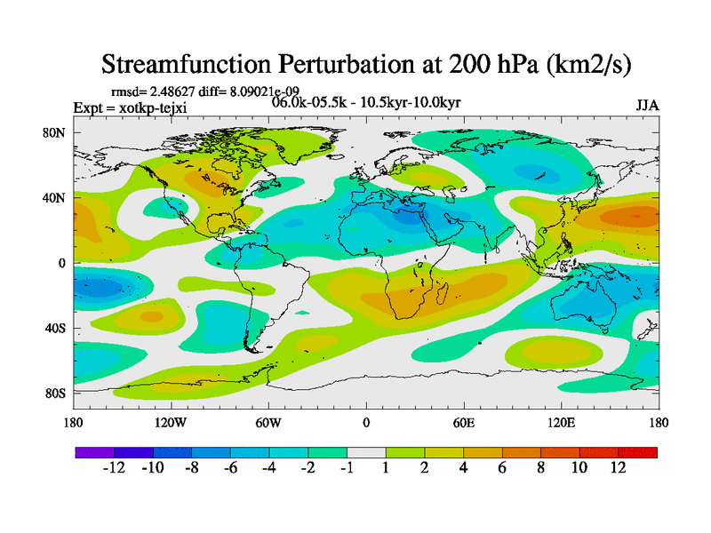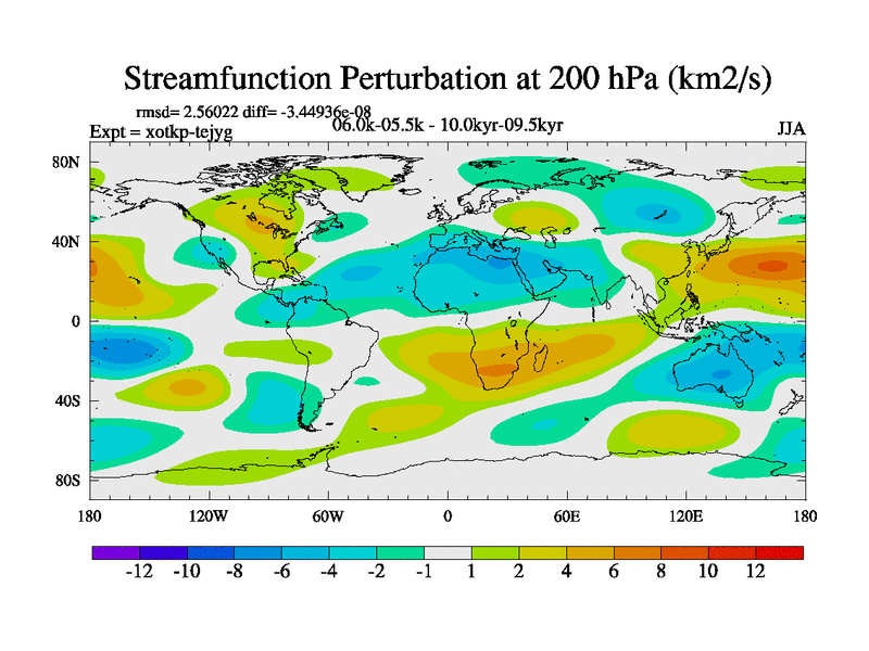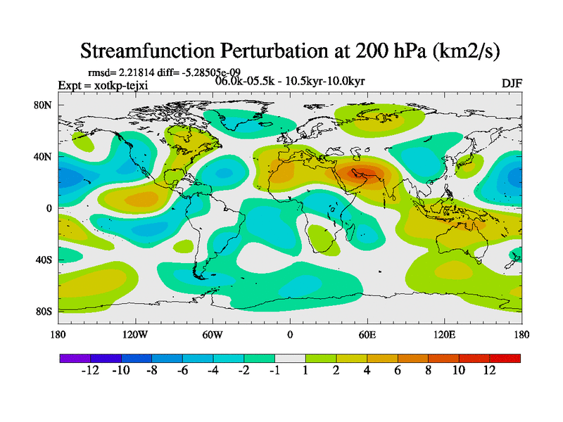 This is part of Birmingham Holocene simulations. This is the CONV-VMS configuration which includes changes to entrainment rate, detrainment and vegetation moisture stress. All forcings included except melt water fluxes. This series originally started from the tdphl spinup. Revised runoff maps, Russian rivers to Arctic. Solar and volcanic forcing is included.