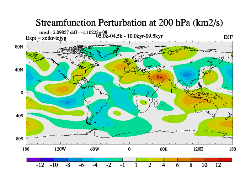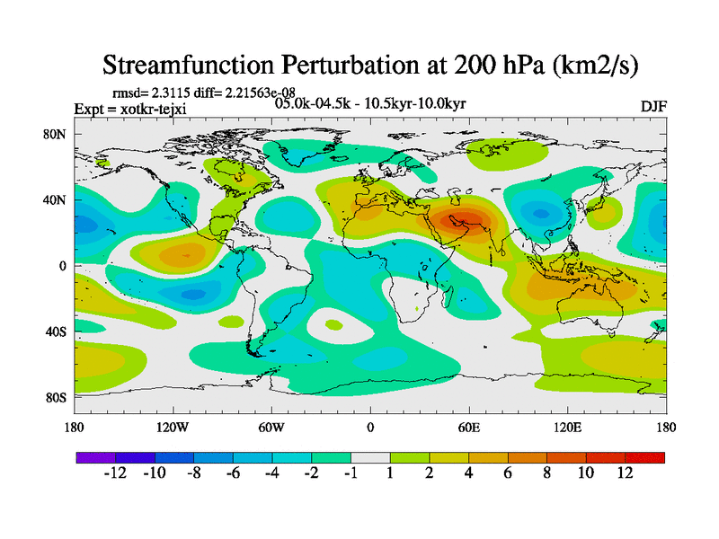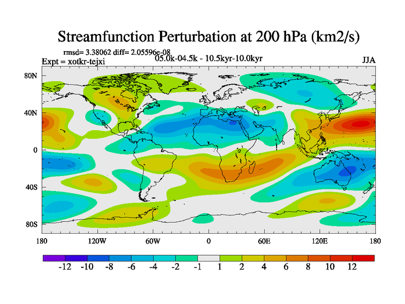 This is part of Birmingham Holocene simulations. This is the CONV-VMS configuration which includes changes to entrainment rate, detrainment and vegetation moisture stress. All forcings included except melt water fluxes. This series originally started from the tdphl spinup. Revised runoff maps, Russian rivers to Arctic. Solar and volcanic forcing is included.