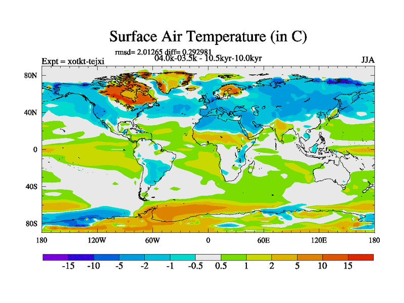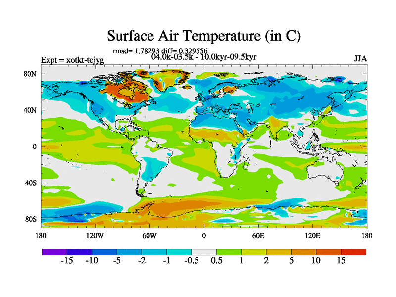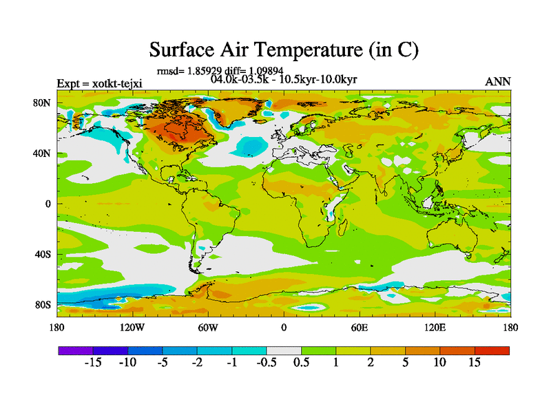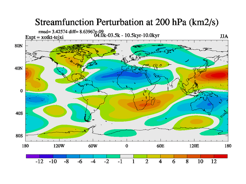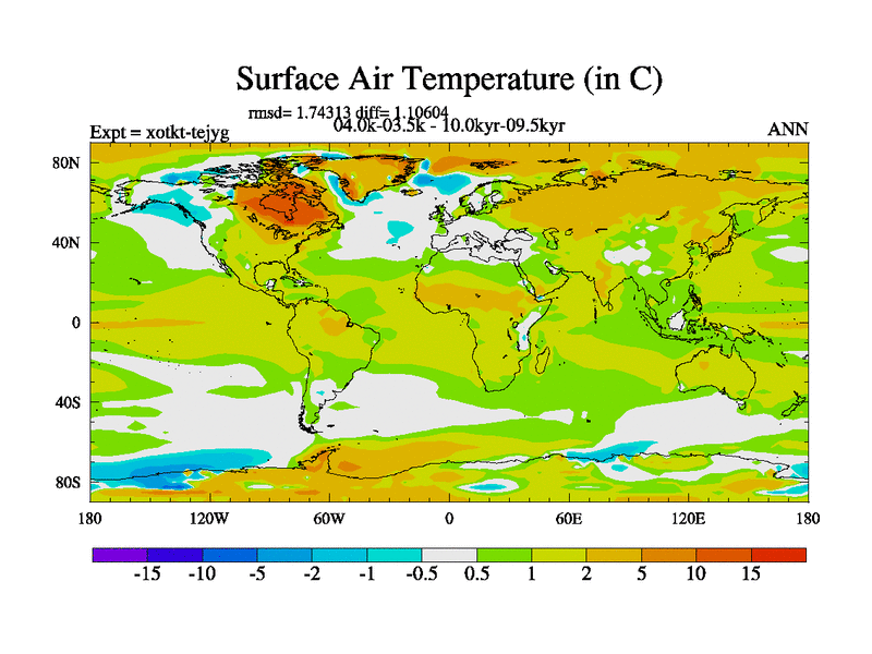 This is part of Birmingham Holocene simulations. This is the CONV-VMS configuration which includes changes to entrainment rate, detrainment and vegetation moisture stress. All forcings included except melt water fluxes. This series originally started from the tdphl spinup. Revised runoff maps, Russian rivers to Arctic. Solar and volcanic forcing is included.