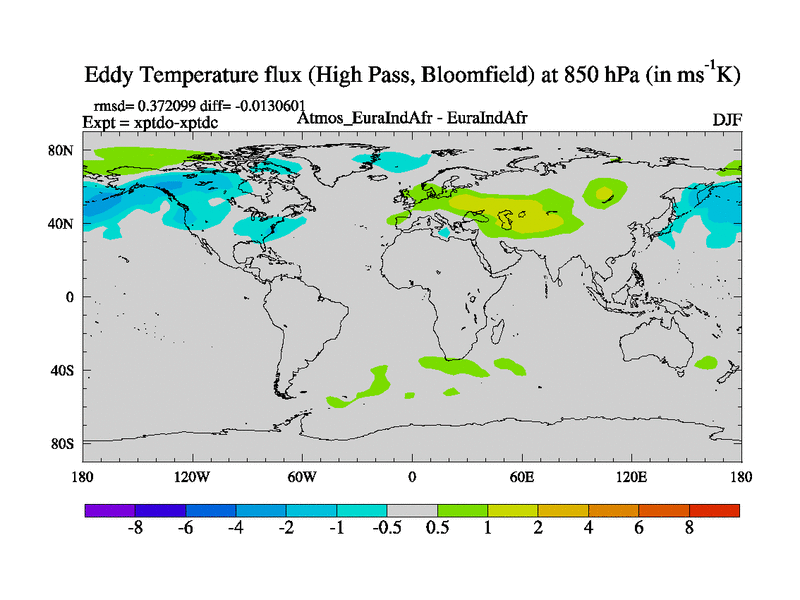 High Pass Temperature Flux at 850 hPa