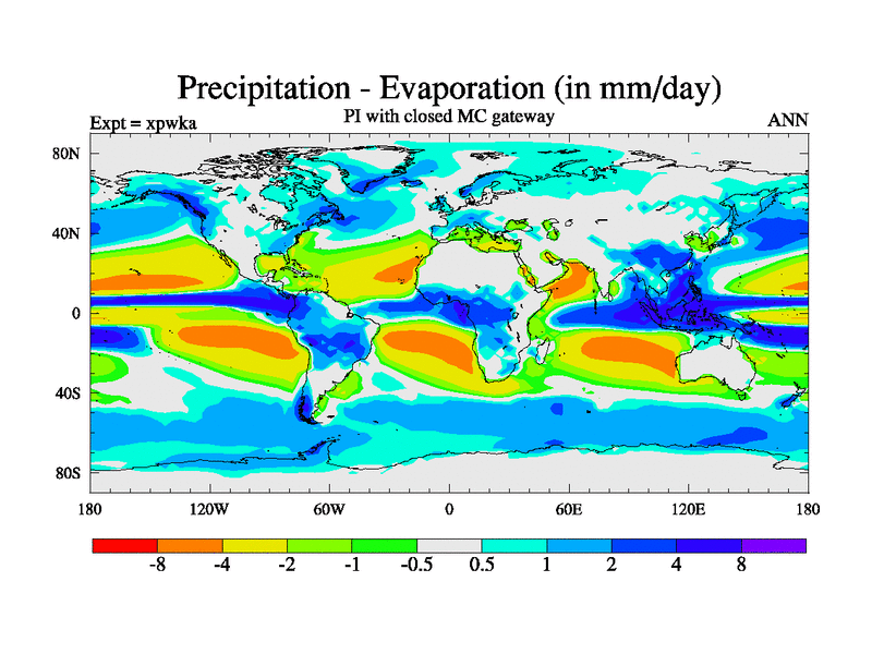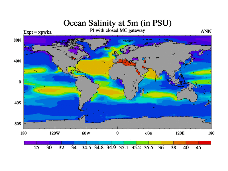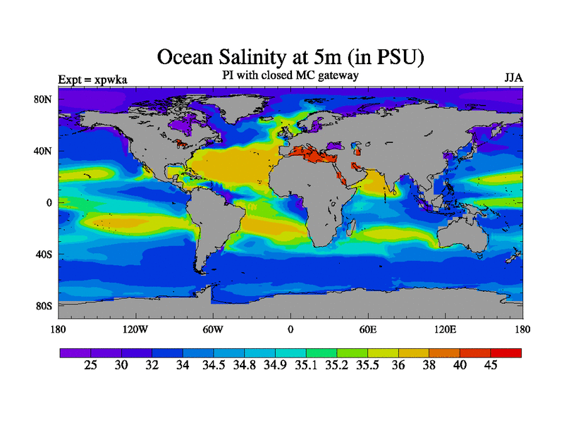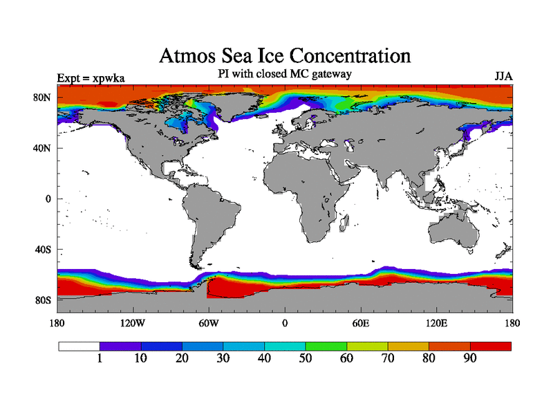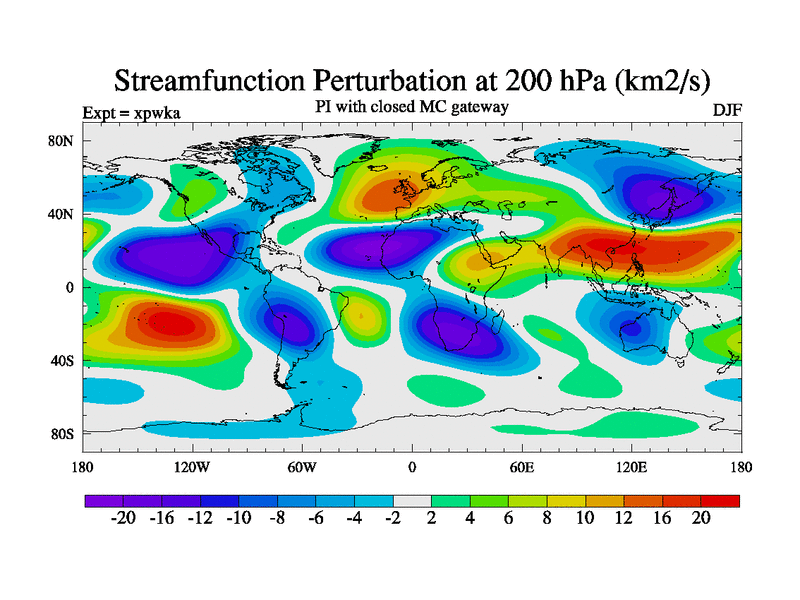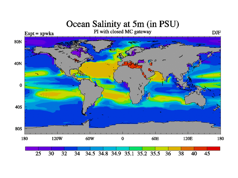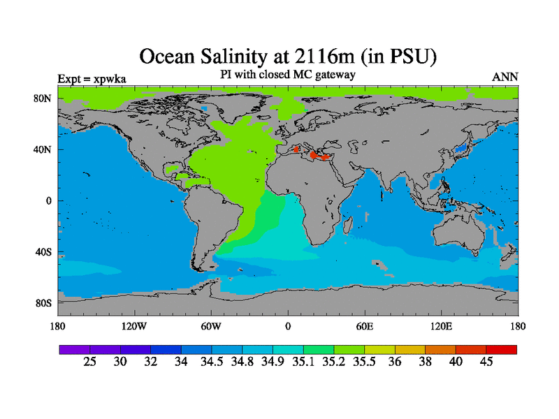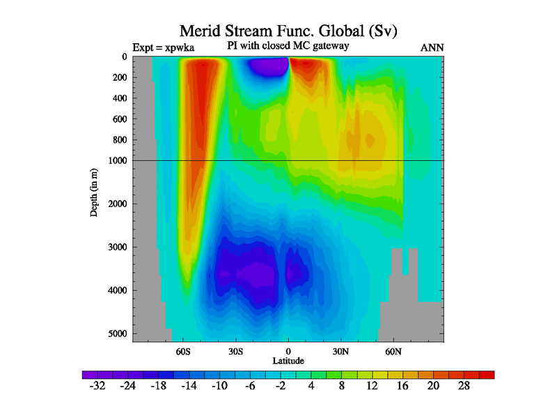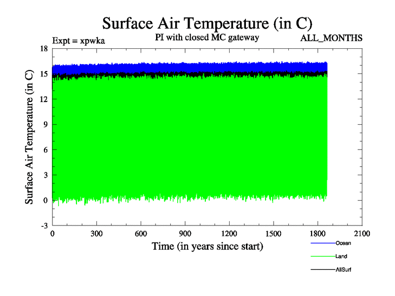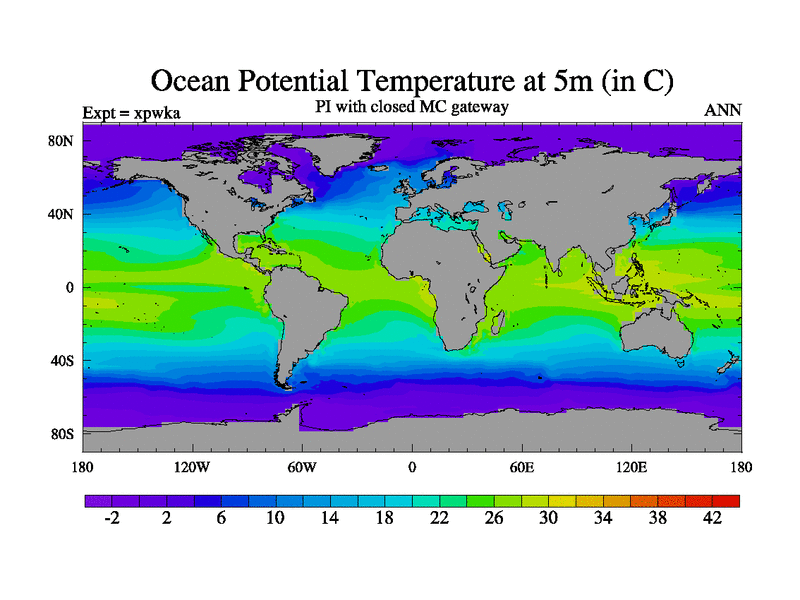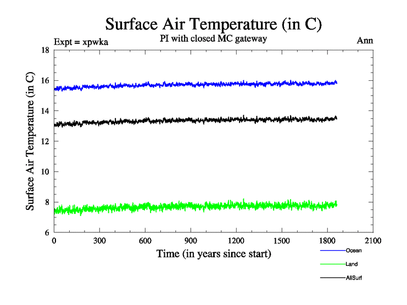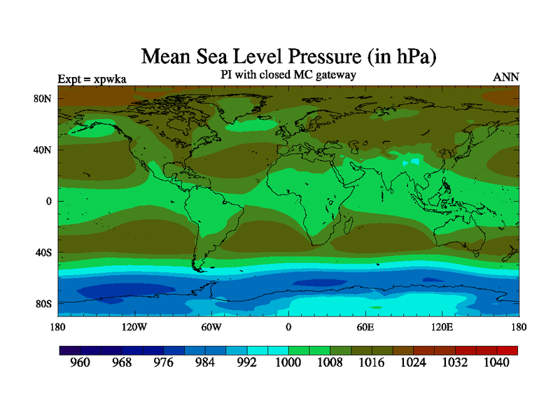 Preindustrial run with mid-Pliocene Maritime Continent gateway. using HadCM3M2.1N with tuned parameters