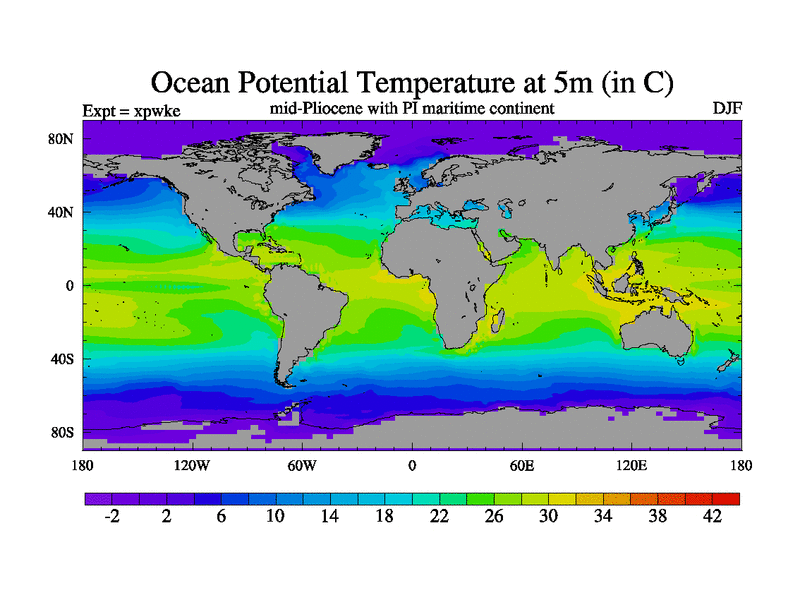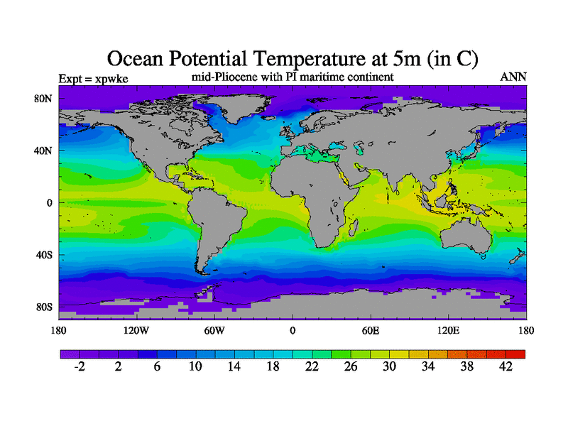 Mid-Pliocene run with Preindustrial Maritime continent gateway. HadCM3M2.1N with tuned parameters.