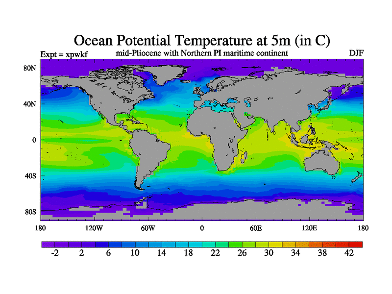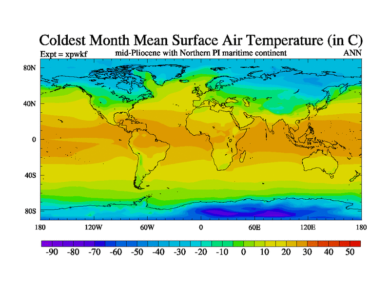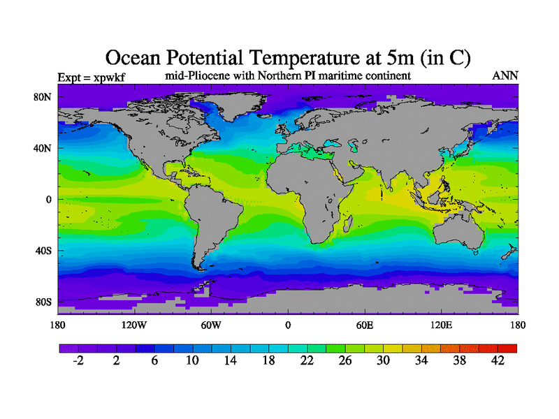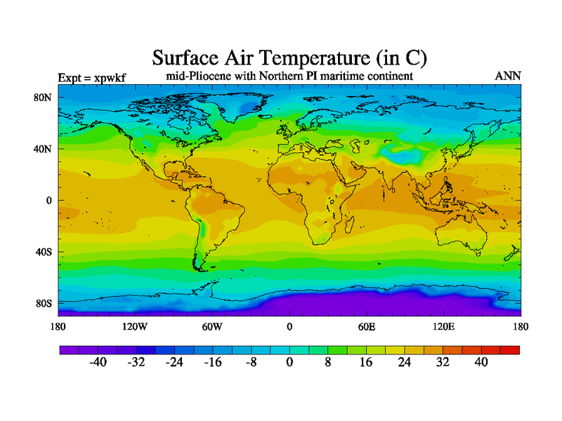 Mid-Pliocene run with northern Preindustrial Maritime continent gateway. HadCM3M2.1N with tuned parameters.