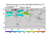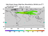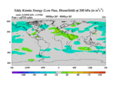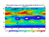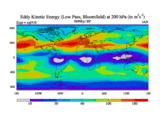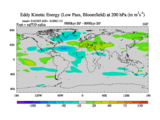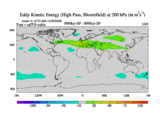 Low Pass Eddy Kinetic Energy at 200 hPa