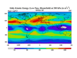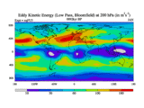 Low Pass Eddy Kinetic Energy at 200 hPa