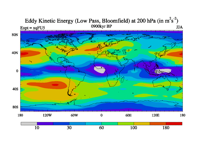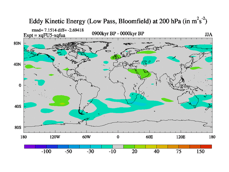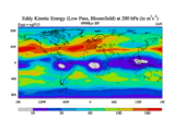 Low Pass Eddy Kinetic Energy at 200 hPa