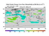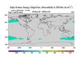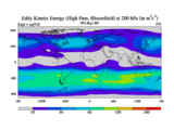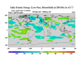 Low Pass Eddy Kinetic Energy at 200 hPa