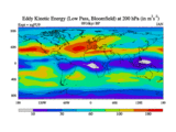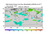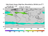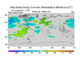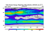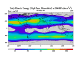 Low Pass Eddy Kinetic Energy at 200 hPa