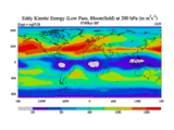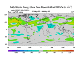 Low Pass Eddy Kinetic Energy at 200 hPa