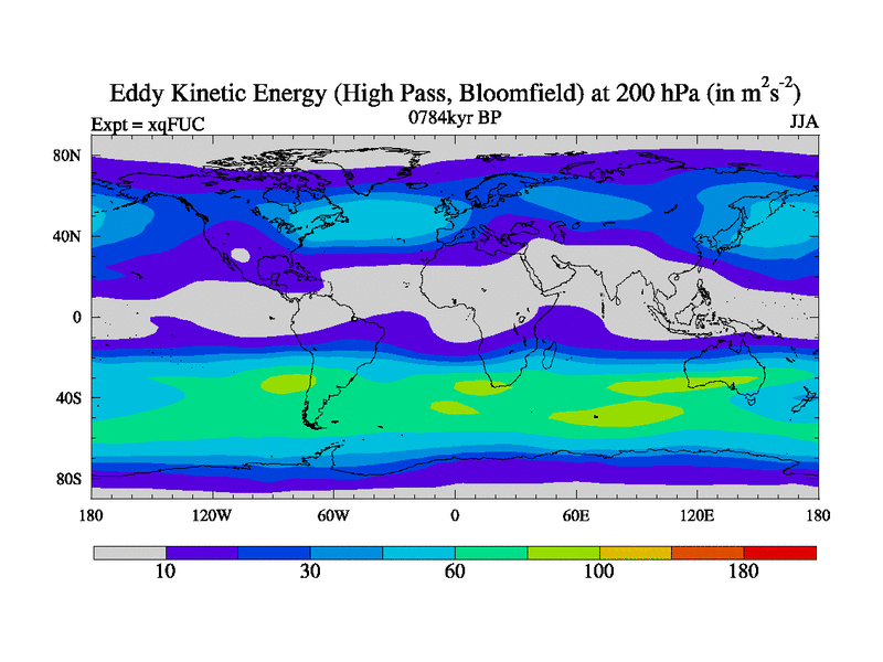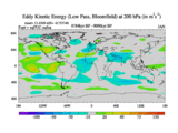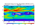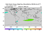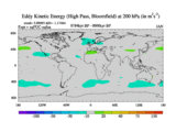 Low Pass Eddy Kinetic Energy at 200 hPa