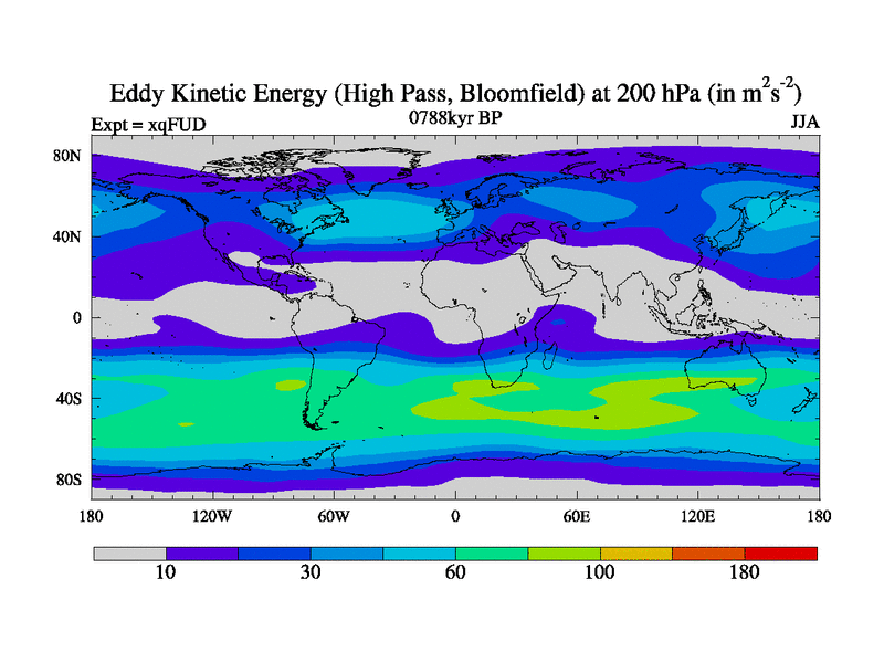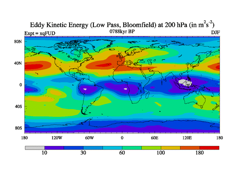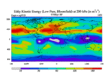 Low Pass Eddy Kinetic Energy at 200 hPa