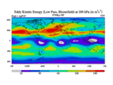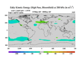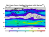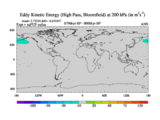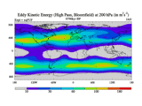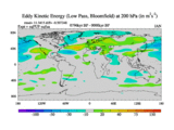 Low Pass Eddy Kinetic Energy at 200 hPa