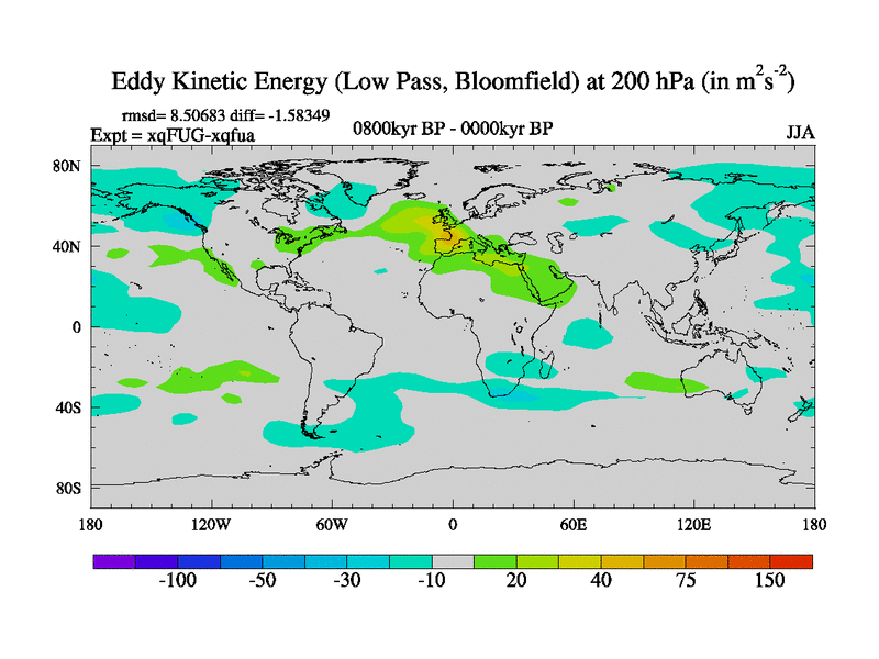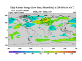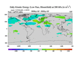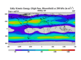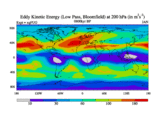 Low Pass Eddy Kinetic Energy at 200 hPa