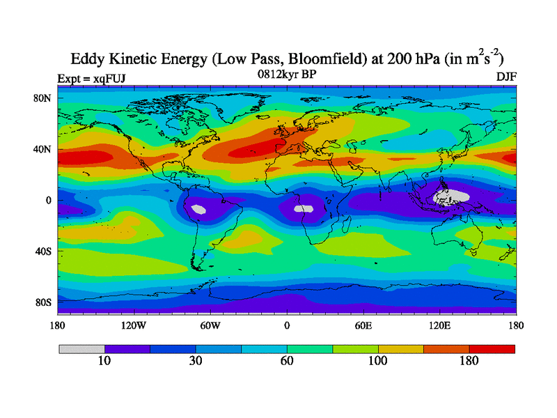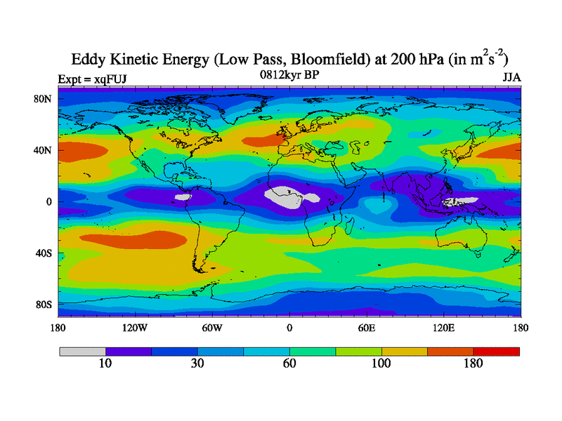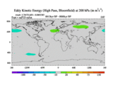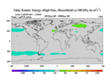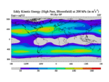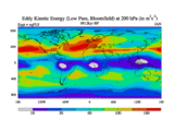 Low Pass Eddy Kinetic Energy at 200 hPa