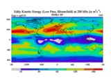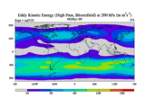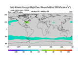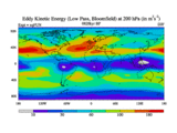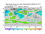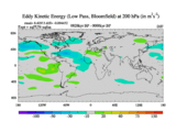 Low Pass Eddy Kinetic Energy at 200 hPa