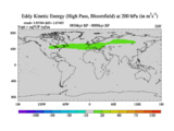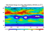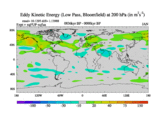 Low Pass Eddy Kinetic Energy at 200 hPa