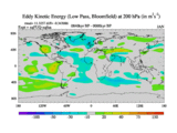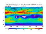 Low Pass Eddy Kinetic Energy at 200 hPa