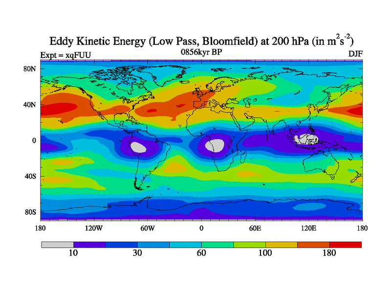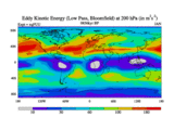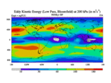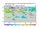 Low Pass Eddy Kinetic Energy at 200 hPa