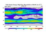 High Pass Eddy Kinetic Energy at 200 hPa