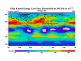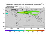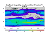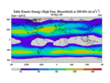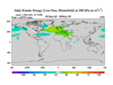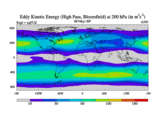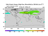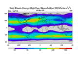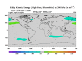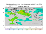 Low Pass Eddy Kinetic Energy at 200 hPa