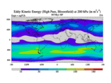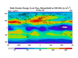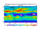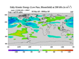 Low Pass Eddy Kinetic Energy at 200 hPa