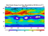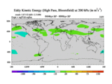Low Pass Eddy Kinetic Energy at 200 hPa