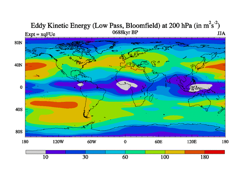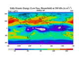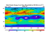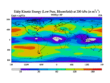 Low Pass Eddy Kinetic Energy at 200 hPa
