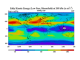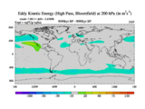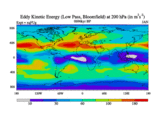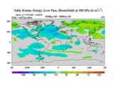 Low Pass Eddy Kinetic Energy at 200 hPa