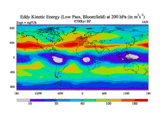 Low Pass Eddy Kinetic Energy at 200 hPa
