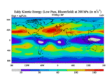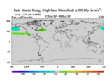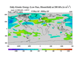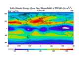 Low Pass Eddy Kinetic Energy at 200 hPa