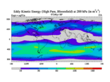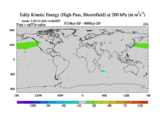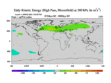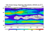 Low Pass Eddy Kinetic Energy at 200 hPa