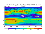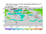 Low Pass Eddy Kinetic Energy at 200 hPa