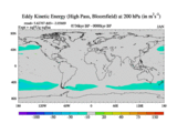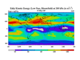 Low Pass Eddy Kinetic Energy at 200 hPa