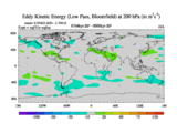Low Pass Eddy Kinetic Energy at 200 hPa
