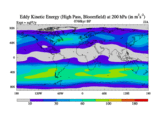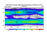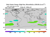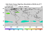 Low Pass Eddy Kinetic Energy at 200 hPa