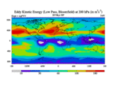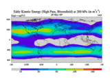 Low Pass Eddy Kinetic Energy at 200 hPa