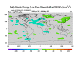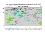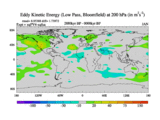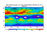 Low Pass Eddy Kinetic Energy at 200 hPa