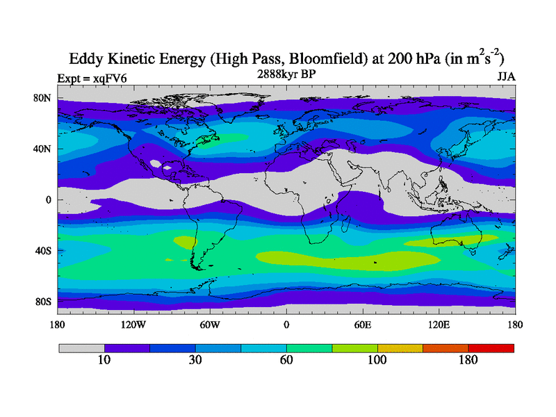 Low Pass Eddy Kinetic Energy at 200 hPa