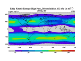 High Pass Eddy Kinetic Energy at 200 hPa