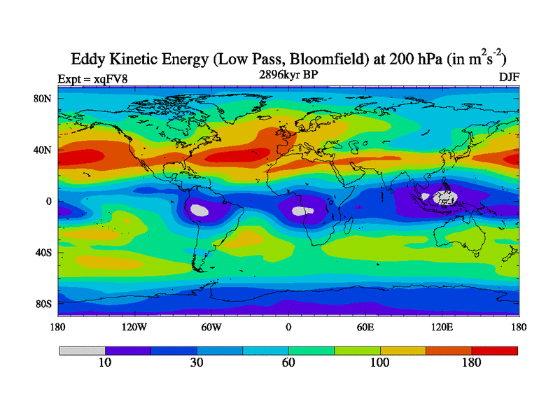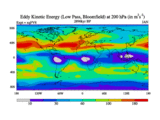 Low Pass Eddy Kinetic Energy at 200 hPa