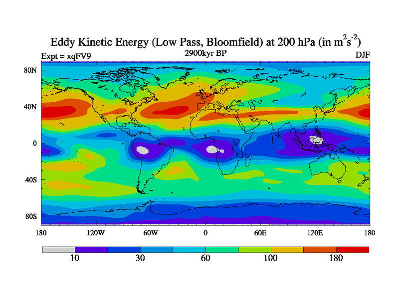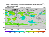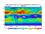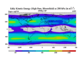 Low Pass Eddy Kinetic Energy at 200 hPa