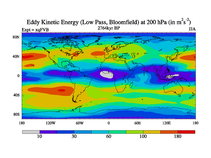 Low Pass Eddy Kinetic Energy at 200 hPa