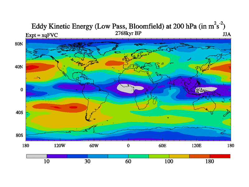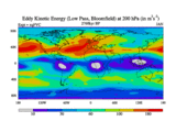 Low Pass Eddy Kinetic Energy at 200 hPa