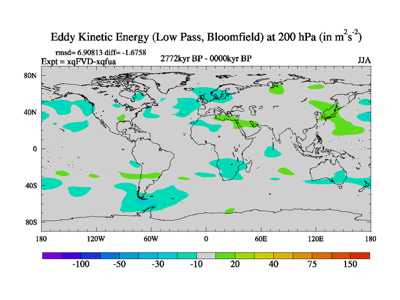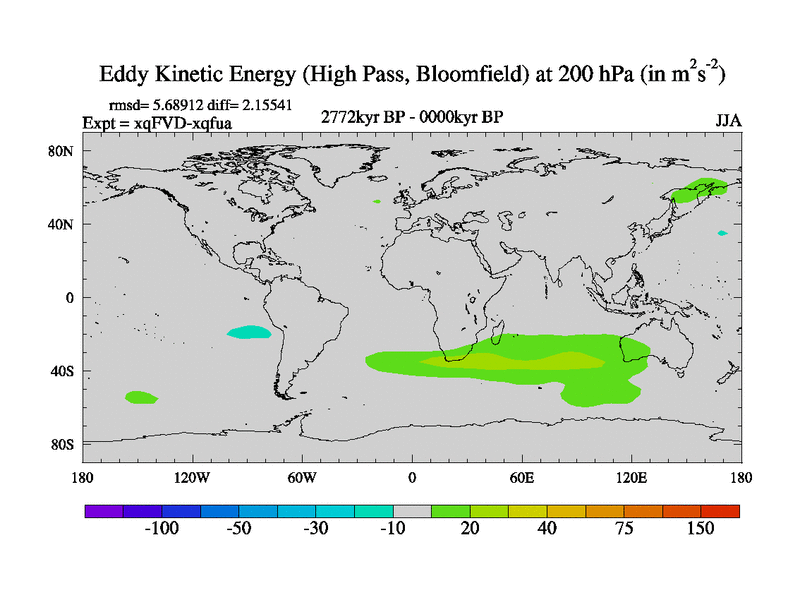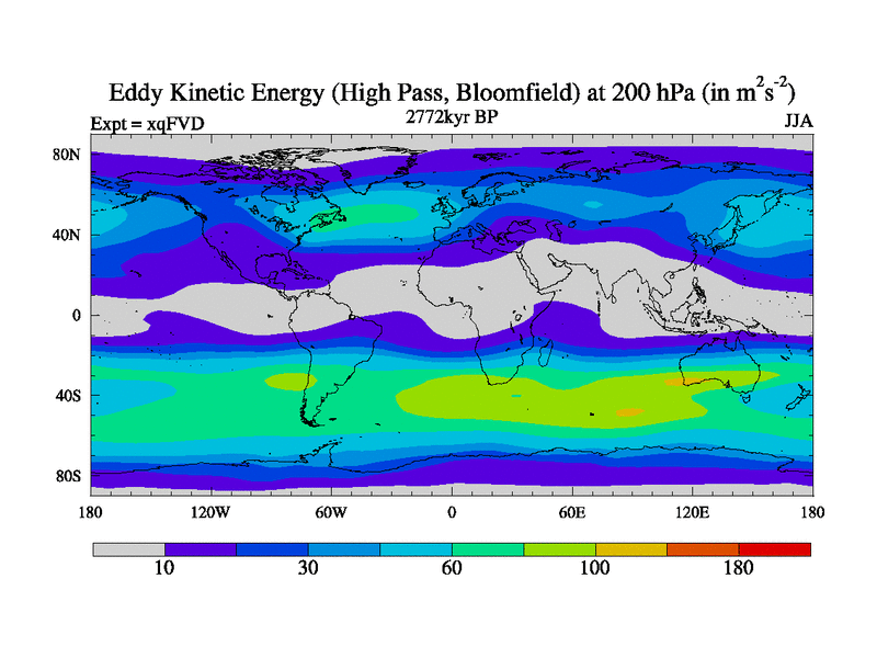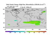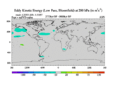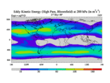 Low Pass Eddy Kinetic Energy at 200 hPa