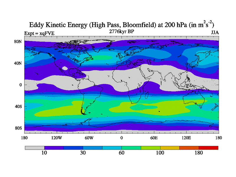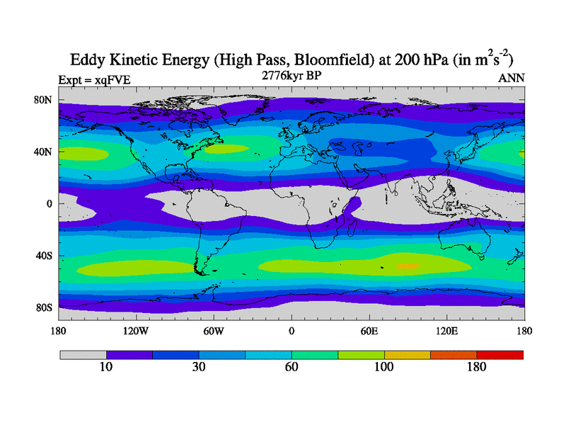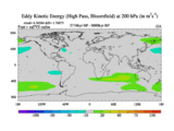 High Pass Eddy Kinetic Energy at 200 hPa