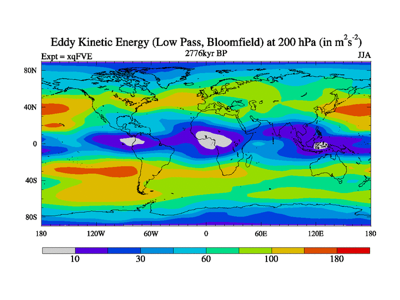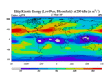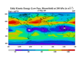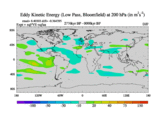 Low Pass Eddy Kinetic Energy at 200 hPa
