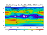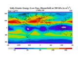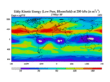 Low Pass Eddy Kinetic Energy at 200 hPa