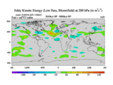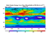 Low Pass Eddy Kinetic Energy at 200 hPa
