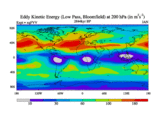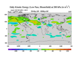 Low Pass Eddy Kinetic Energy at 200 hPa